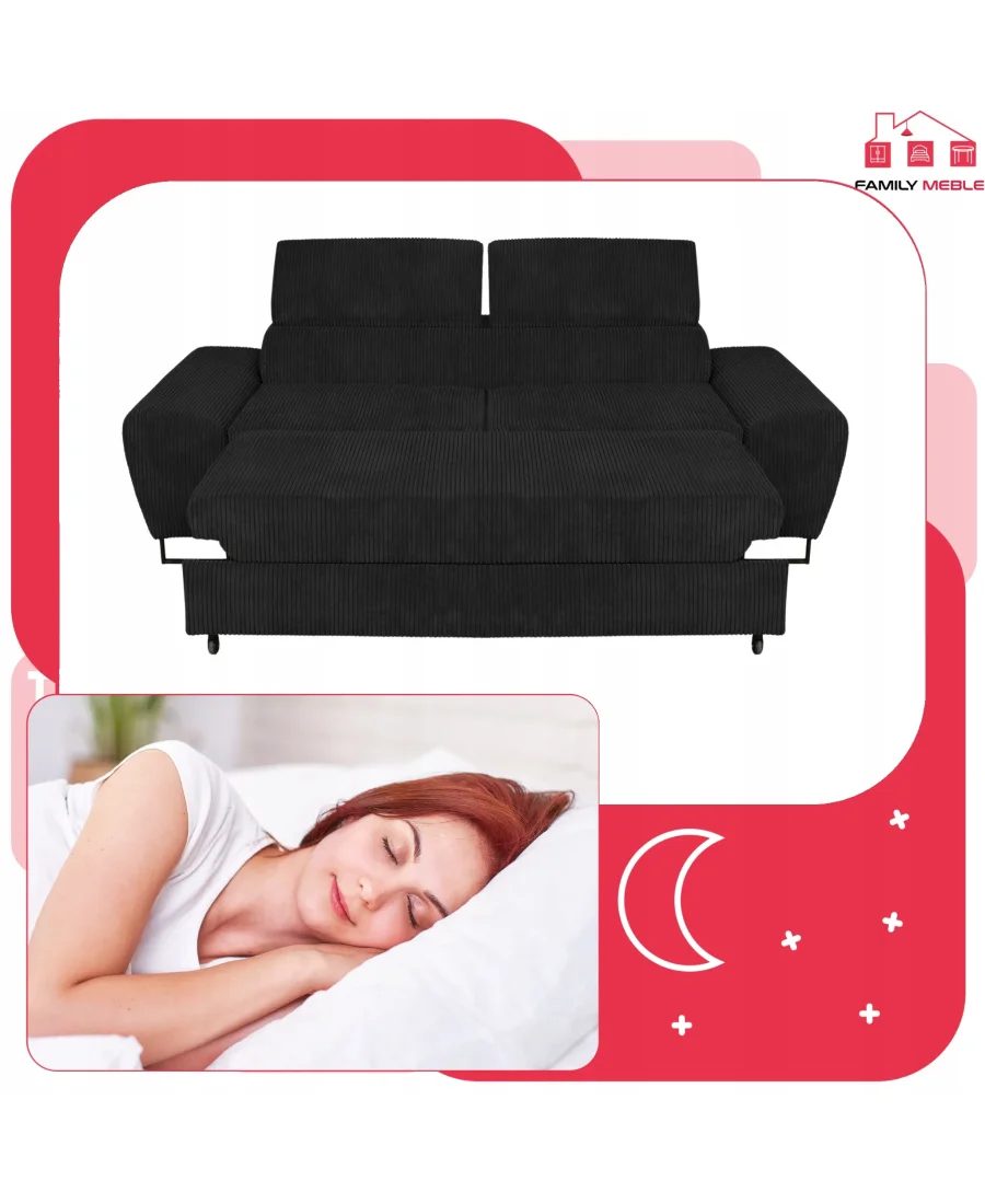 Sofa Savio i sort velour med justerbart nakkestøtte og sovefunktion er den perfekte tilføjelse til dit hjem. Denne stilfulde og funktionelle sofa er designet med fokus på både æstetik og komfort. Med en moderne og elegant fremtoning passer den ind i enhver stue og skaber en indbydende atmosfære. Sofaen er ikke kun smuk, men også praktisk, da den kan foldes ud til en komfortabel soveplads, hvilket gør den ideel til overnattende gæster, især børn.